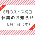 弊社では、誠に勝手ながらスイスの祝日に伴い、下記日程を休業とさせていただきます。