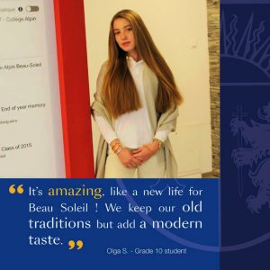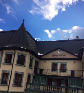 コレージュ・ボー・ソレイユは、1910年から続く伝統校です。メイヤー一家が2010年まで経営していましたが、それ以降は、世界規模で英国系カリキュラムを提供しているノードアングリアの教育傘下に入っています。アルプスの山中にあるお城のような校舎は、ヨーロッパ貴族の世界を連想させます。2017年には改装工事が実施され、伝統的な景観を保ちつつ、モダンな校舎が建設されました。また、バランスの取れた人間形成を目指し、学業、スポーツ以外にも、演劇や音楽などバラエティに富んだ課外活動の提供もあります。学校は、英語セクションとフランス語セクションがありますが、他校に比べ、実用的なフランス語に触れる機会が多いので、フランス語を積極的に習得したいお子様にお勧めです。