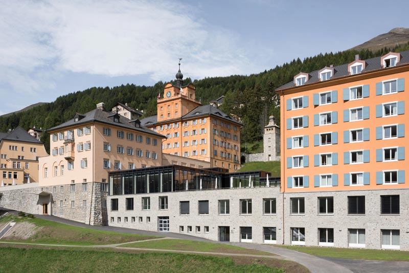 リツェウム・アルピヌム・ツオツ校は、スイス有数のリゾート地として有名なサンモリッツ近郊に所在し、自然環境がとても豊かな学校です。130,000㎡の広大なキャンパスを有し、スポーツ・プログラムに力を入れていることでも有名です。広々とした学内には、サッカーフィールドやテニスコート等、様々なスポーツ用のグラウンドや施設が整っており、また、徒歩圏内には巨大なゴルフコースやスキー場もあります。